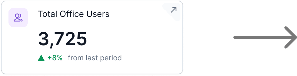 The drawer here is showing the breakdown of the “Total Office Users” metric, listing the headcount under each department
